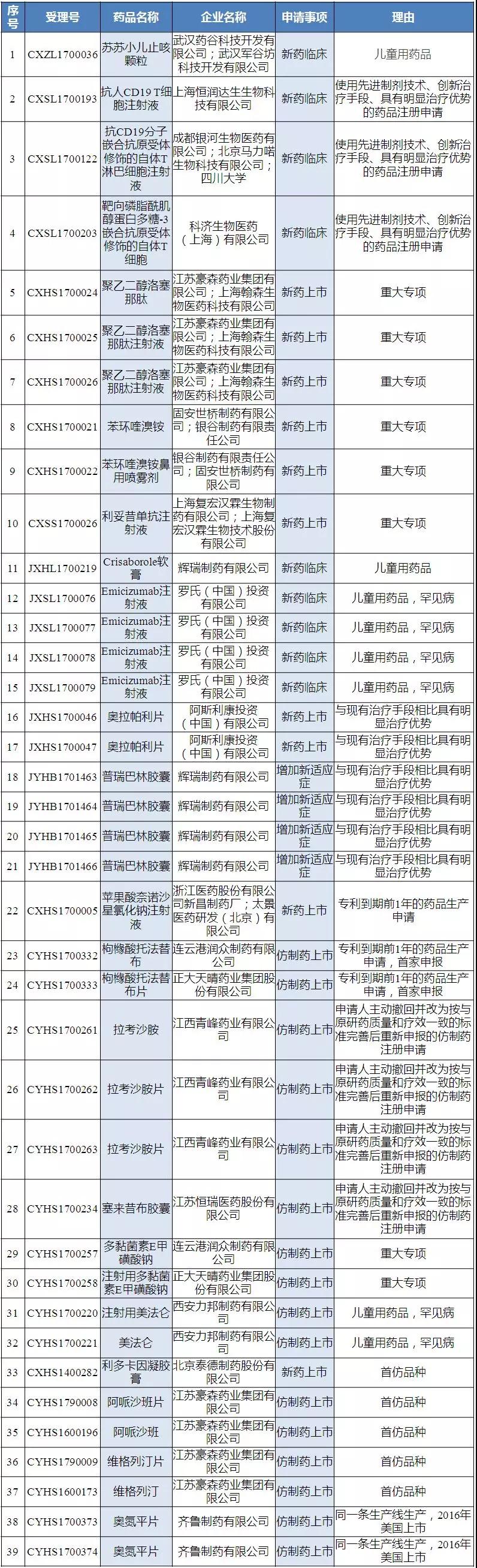 优先审评品种最新公示名单!海正