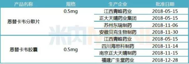 表3:恩替卡韦相关产品已通过一致性评价的情况